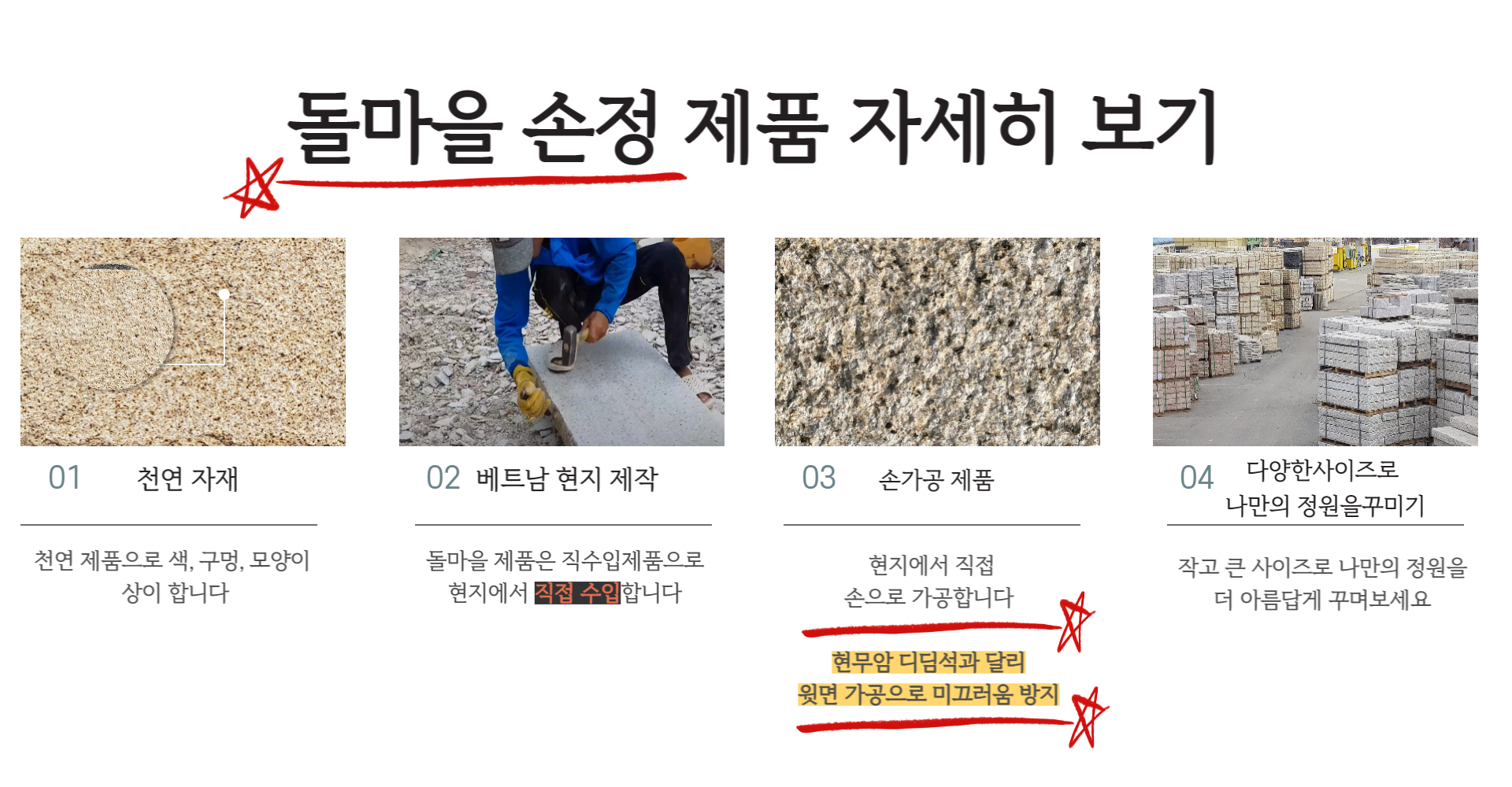 윗면 : 손정다듬 / 측면 : 자연면